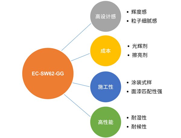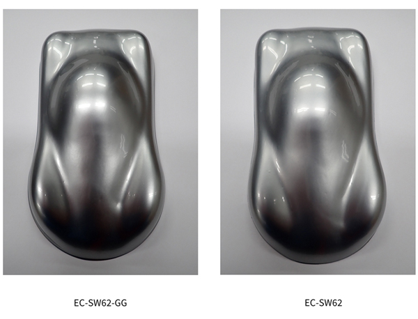 EC-SW62-GG作为金彩汇现行仿电镀涂料EC-SW62-的改良款,辉度感更强、涂料表面的粒子颗粒感更细腻。此外,使用光辉剂代替特殊铝粉的独创性操作,不仅使得成本大幅降低,满足了市场的需求,而且还赋予了该款涂料应对严苛耐湿性、耐候性的高性能特性。不仅如此,该款涂料还可以湿喷湿,大大提升了涂装作业的操作性及稳定性。