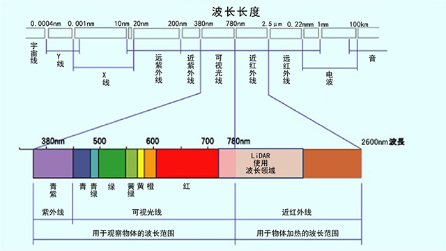 LiDAR传感器使用的近红外线领域波长范围为750至1500nm