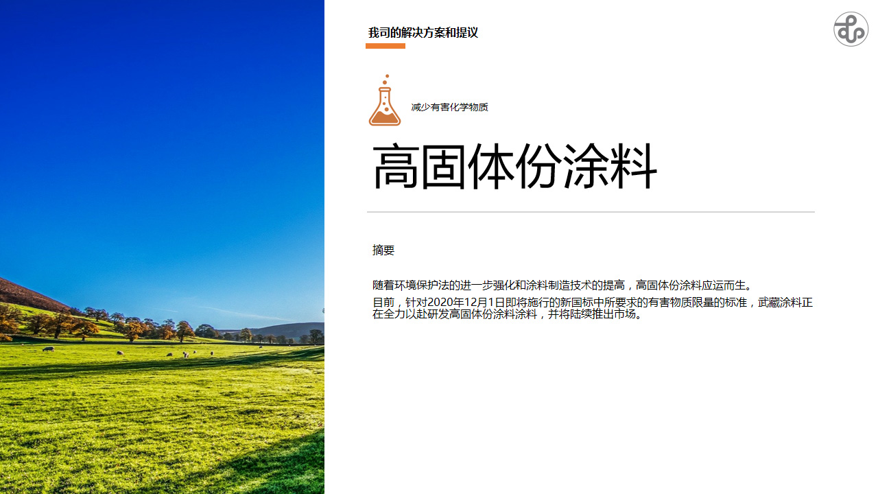 为降低涂料中的VOC含量,与水性涂料一样高固体份涂料同样是解决方案之一。VOC是生成PM2.5的重要前体物之一,溶剂挥发是继汽车尾气排放及烟雾漂尘之后的第三大空气污染源。同时在常温下VOC以蒸发的形式存在于空气中,它对人体的健康有着巨大的影响。传统涂料对大气环境和人类健康都有很大的影响。传统涂料用有机溶剂作为稀释剂,含有大量的挥发有机化合物(VOC)。因此,降低涂料及其使用过程中溶剂的含量可以极大地减轻上述对于大气以及人体的伤害。
