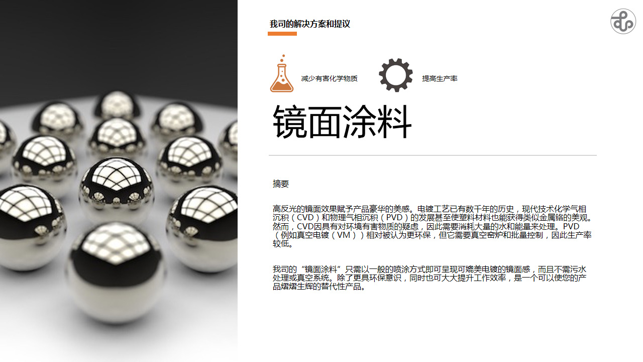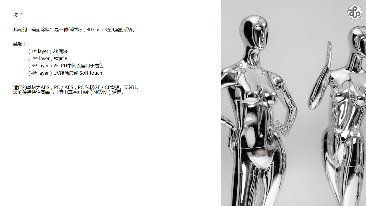 为实现金属效果,传统工艺一般是电镀以及后面由于环保而应运产生的PVD、NCVM等工艺。电镀由于污染问题,在很多地区已面临不能稳定生产的问题。同样,PVD、NCVM等工艺由于需要增加设备投资,且工艺本身存在一些影响效率的因素。金彩汇涂料一直在思考能否通过喷涂来解决此痛点。通过研发,终于在2019年向市场成功推出镜面涂料,且于2020年又推出了改良版本。经外部检测机构验证,该涂料几乎不存在任何5G信号衰减的问题。由此我们预计将在5G通讯设备以及汽车自动驾驶辅助设备上将有光明的应用前景。
