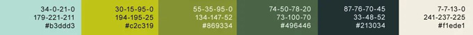 色彩分析:以黄绿色为主色,再配以青白、象牙白,采用类似色搭配方式营造春季清爽、明丽的氛围。