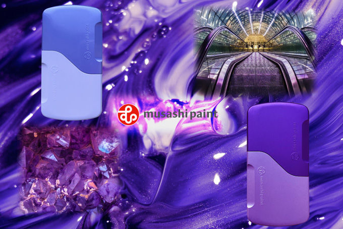 加了珠光的淡雅紫搭配长春花蓝天真自然,仙气飘飘,给人治愈温柔的感觉;哑光UV搭配砂紫和银光紫,强烈的科技感即刻呈现。