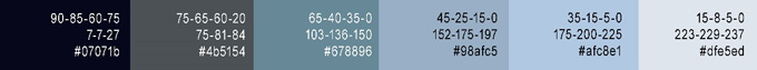 色彩分析:以纯度极低的蓝灰色系为主,再搭配黑色、灰色的中性色,提告明暗对比,增强了极寒、萧瑟的氛围。